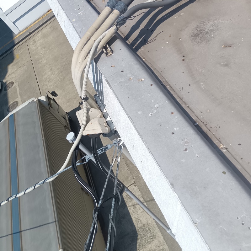 兵庫県姫路市の店舗より、鳩対策のご相談をいただきました。 屋根の上に鳩が止まり、店舗の玄関前にフンが落ちているとのことでした。 現地調査をおこなったところ、屋上の床面や配管の周辺に多数のフン害が確認されました。 鳩は気に入った場所に執着する習性があるため、いったん住み着かれてしまうと自力での対策は難しくなります。 そのため、物理的な飛来防止策と徹底した清掃を実施することとなりました。