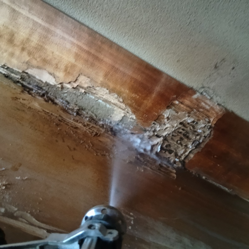 千葉県市川市関ケ島の戸建て住宅を担当されている建築業者様から、シロアリ駆除のご依頼をいただきました。 壁板の高さ1mほどの場所にシロアリが発生しているとのことでした。 現地調査の結果、木材の内部にまで食害がおよんでいました。 建物の強度を維持し、大切なお住まいを守るべく、迅速に駆除および予防施工をおこないました。