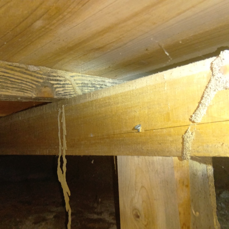 福岡県北九州市八幡西区青山の戸建て住宅にお住まいのお客様から、シロアリ駆除のご依頼をいただきました。 床の間からシロアリが出ているのを発見したとのことでした。 現地調査をおこなったところ、床下の木材にはシロアリが日光や乾燥を避けて移動するために作る「蟻道(ぎどう)」が伸びていました。 被害が建物全体に広がる前に、シロアリを駆除して大切な住まいを守るための施工を実施することとなりました。