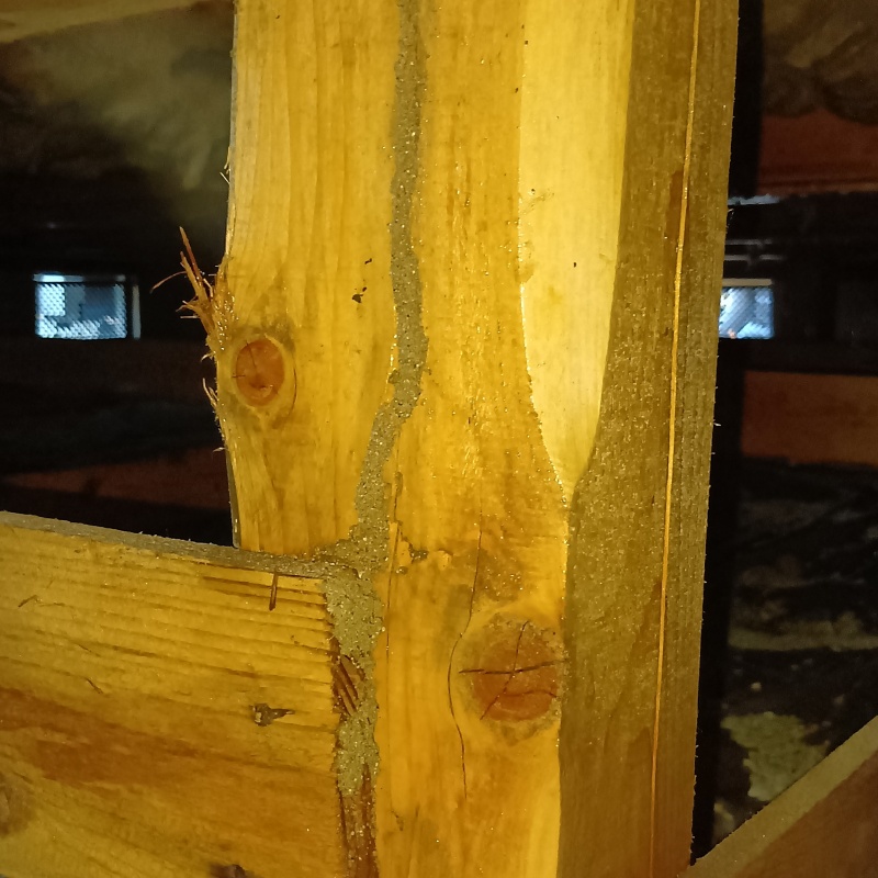 岐阜県中津川市手賀野の戸建て住宅にお住まいのお客様より、シロアリ駆除のご依頼をいただきました。 リビングにある扉の枠がもろくなっていることに気付いたとのことでした。 現地調査したところ、扉枠の内部までシロアリによる食害が進んでいました。 シロアリは気付かぬうちに建物の強度を低下させるおそれがあります。 大切なお住まいを守るため、建物全体の駆除施工を迅速に実施しました。