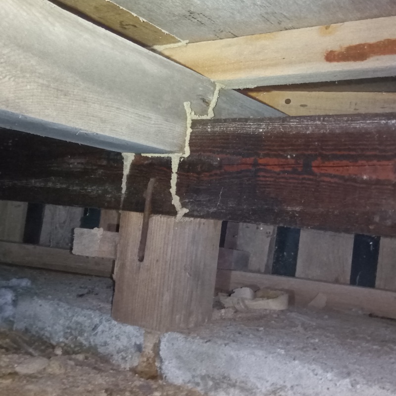 茨城県日立市高鈴町の戸建て住宅にお住まいのお客様から、シロアリ駆除のご依頼をいただきました。 和室の他、居間にもシロアリが発生しているとのことで、現地調査をおこなったところ床下にて蟻道が確認されました。 建物の耐久性を維持するために、シロアリ駆除および防腐施工を実施することになりました。