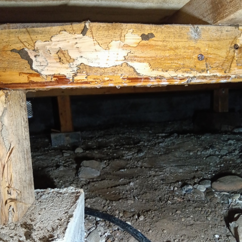 三重県南牟婁郡御浜町阿田和の戸建て住宅にお住まいのお客様から、シロアリ予防のご依頼をいただきました。 畳部分がふかふかしていることからシロアリの可能性を心配されているとのことでした。 現地調査の結果、床下の木材にシロアリによる食害の痕跡が見られたため、被害の拡大を防ぐための防腐防カビ処理をあわせた予防施工を実施しました。
