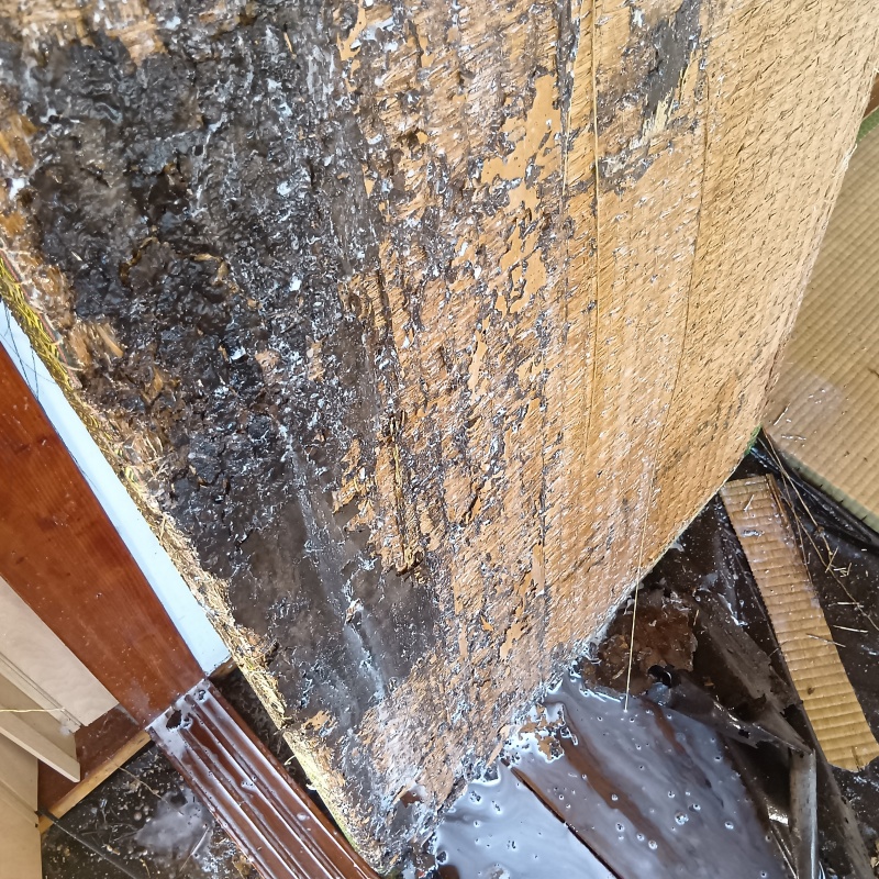 大分県別府市上人南の戸建て住宅にお住まいのお客様から、シロアリ駆除のご依頼をいただきました。 和室の畳や襖のレール部分に約50cmにおよぶ深刻な食害が見つかったとのことでした。 現地調査で畳を挙げてみると、裏側はシロアリの食害によってボロボロになっている状態でした。 また、床下の木部にはシロアリの通り道である蟻道(ぎどう)が確認されました。 これ以上の被害拡大を防ぎ、大切なお住まいの強度を維持するため、建物全体にわたる徹底した駆除施工を実施しました。