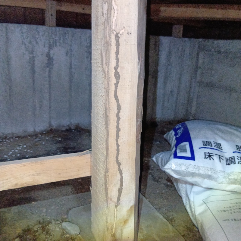 東京都あきる野市油平の戸建て住宅にお住まいのお客様から、シロアリ駆除のご依頼をいただきました。 1階和室の畳に穴が開いており、畳を上げると土のようなものが見つかったとのことでした。 現地調査の結果、床下の木材にはシロアリが移動のために作る「蟻道(ぎどう)」が確認され、食害も進行している深刻な状況でした。 大切なお住まいの強度を維持し、被害の拡大を食い止めるため、迅速に防除作業を開始しました。