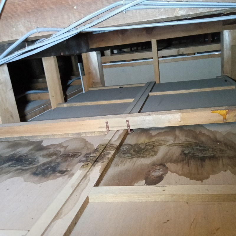 奈良県生駒市壱分町の戸建て住宅にお住まいのお客様から、イタチ駆除のご依頼をいただきました。 天井裏からガサガサと足音が聞こえるとのことで、現地調査を実施したところ、天井裏に尿によるシミが確認されました。 イタチが侵入し住み着いている事が判明し、駆除と再発防止対策を実施することになりました。