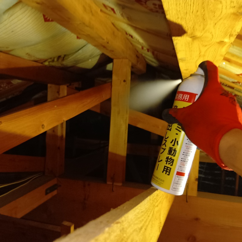 福岡県久留米市三潴町西牟田の戸建て住宅にお住まいのお客様から、ネズミ駆除のご依頼をいただきました。 壁の中からカサカサと動き回る足音や物音が聞こえ、時には鳴き声まで聞こえてくるとのことでした。 現地を調査したところ、ネズミが壁の中を通路として利用し、建物内の広範囲に活動を広げている形跡が確認されました。 放置すると断熱材や配線への被害が広がるリスクがあるため、現状を丁寧にご説明し、駆除と再発防止を目的とした施工を開始することとなりました。