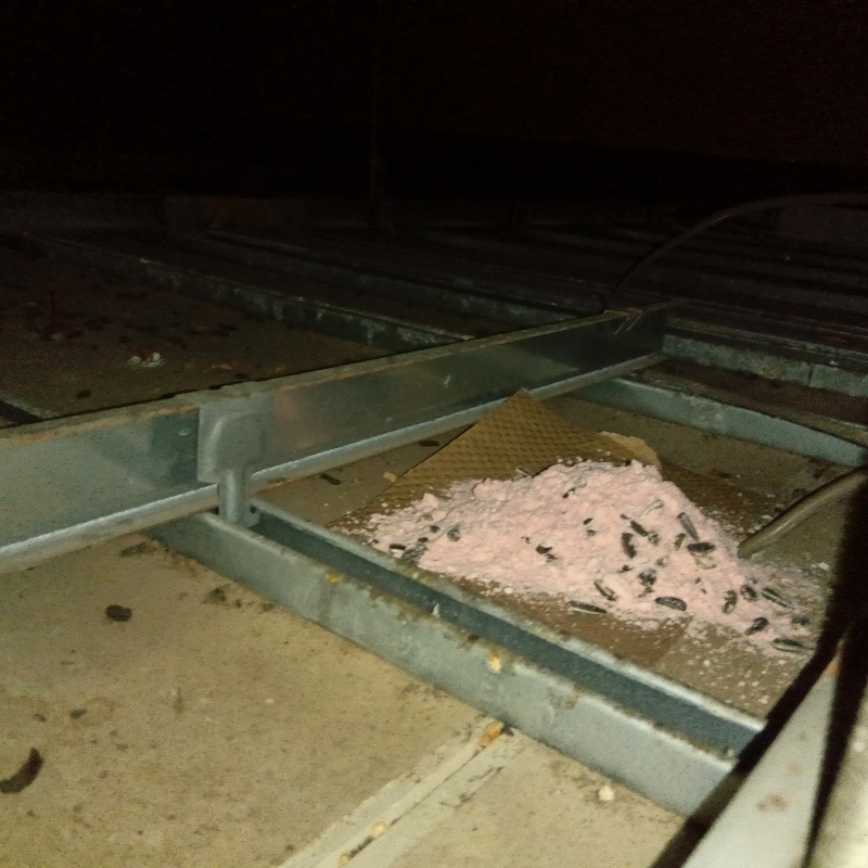 石川県鹿島郡中能登町能登部下の戸建て住宅にお住まいのお客様から、ネズミ駆除のご依頼をいただきました。 天井裏から夜な夜な足音や物音が聞こえるとのことでした。 現地を確認したところ、天井裏にネズミの活動痕跡が複数見つかりました。 天井裏は断熱材があり温かく外敵もいないため、ネズミが巣を作りやすい場所です。 放置すると不衛生なだけでなく、建物の劣化や健康被害にもつながるため、根本的な解決を目指して現在の状況に合わせた最適な駆除プランをご提案し、施工を開始しました。