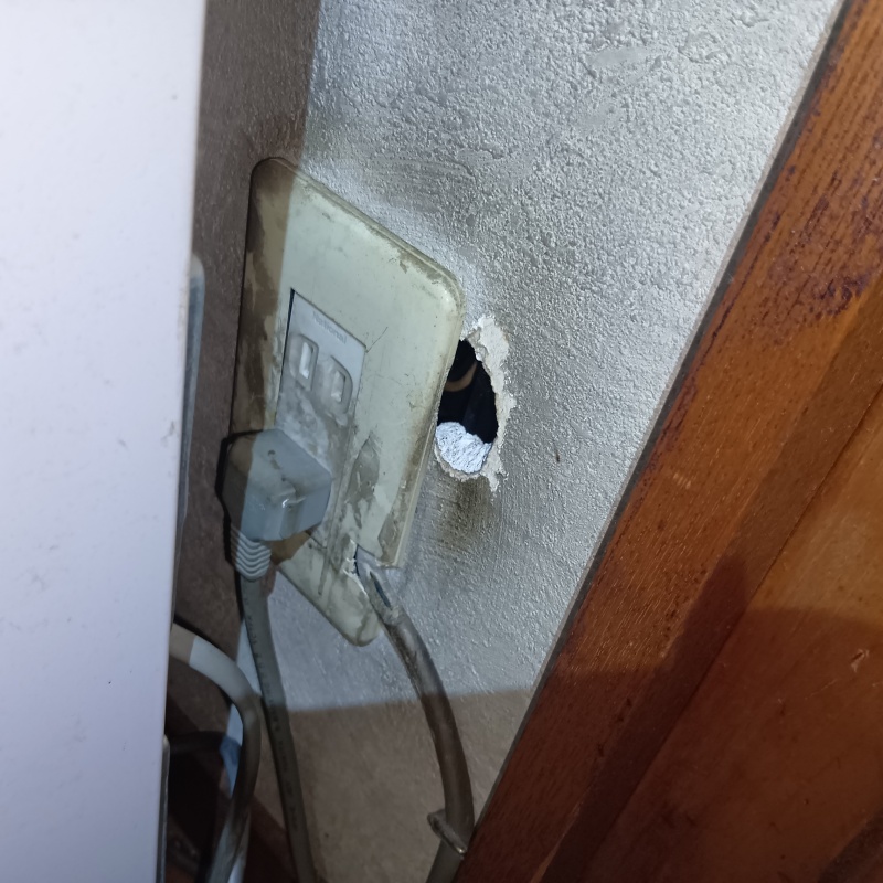 奈良県奈良市西大寺芝町の戸建て住宅にお住まいのお客様から、ネズミ駆除のご依頼をいただきました。 キッチンでネズミの姿を目撃したとのことでした。 現地調査をおこなったところ、コンセント横の壁にネズミの侵入口と思われる穴を発見しました。 ネズミはわずかなすき間から建物内へ入り込み、配線や建材を傷つけるおそれがあるため、被害が拡大する前に迅速な駆除と再発防止の対策を講じることとなりました。
