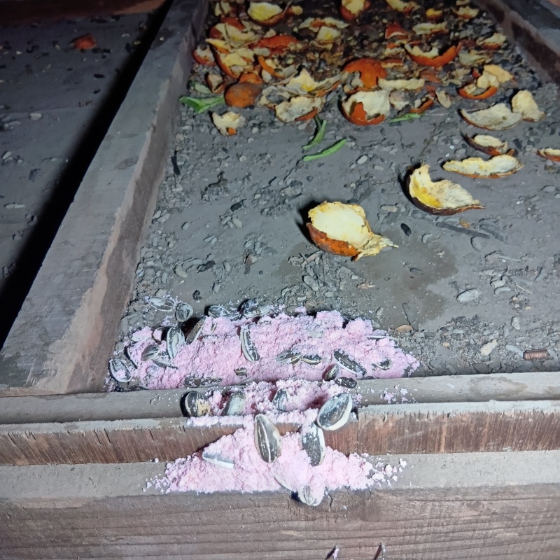 埼玉県三郷市岩野木の戸建て住宅にお住まいのお客様より、ネズミ駆除のご依頼をいただきました。 倉庫から異臭がするため早急に対応してほしいとのことでした。 現地調査の結果、倉庫内にはネズミの死骸が確認された他、母屋側でも広範囲にわたってネズミの活動形跡が見つかりました。 特に倉庫周辺ではネズミによる食害も深刻で、果実の食べ残しが散乱している状態でした。