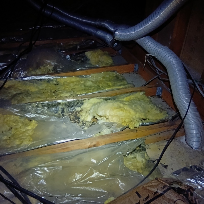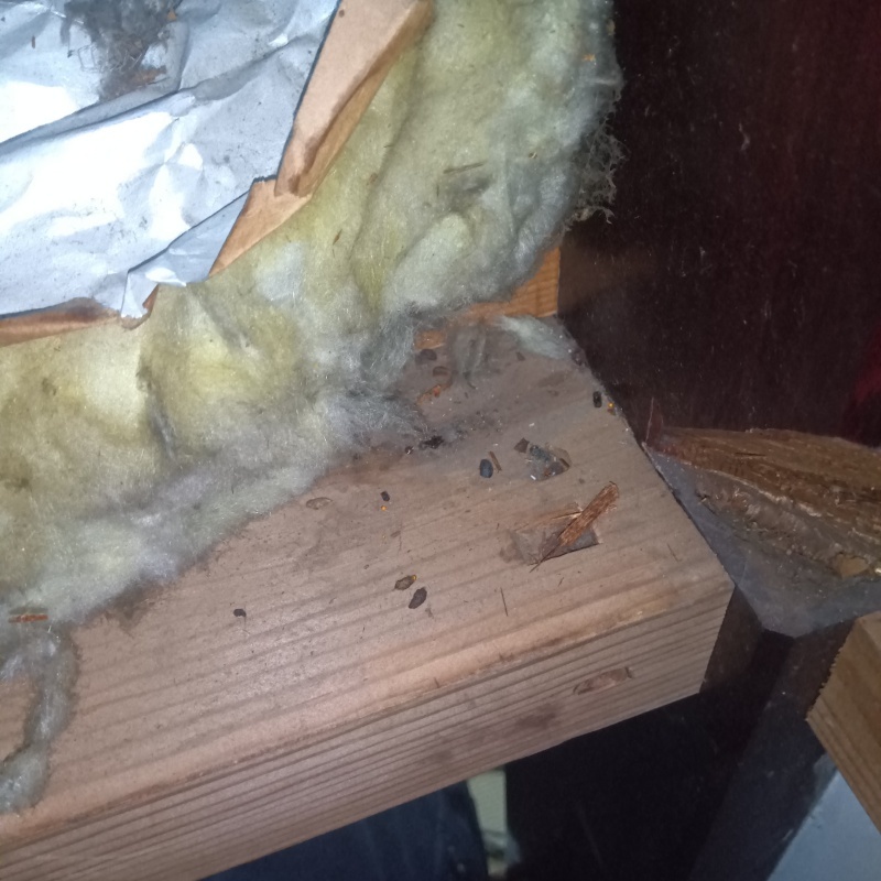 埼玉県幸手市香日向の戸建て住宅にお住まいのお客様から、ネズミ駆除のご依頼をいただきました。 天井裏から物音が聞こえ、壁には尿によるシミや異臭も発生しているとのことでした。 現地調査をおこなったところ、屋根裏の断熱材が激しく荒らされており、ネズミが長期間住み着いていることが確認されました。 不衛生な環境を改善し、建物を守るための総合的な駆除施工を実施することになりました。