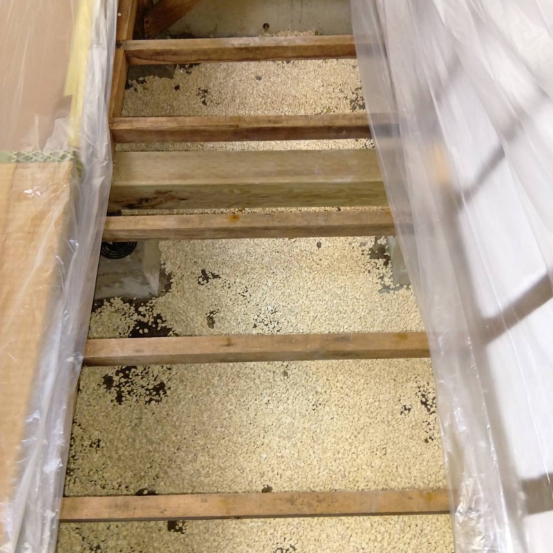 滋賀県長浜市宮司町の戸建て住宅にお住まいのお客様より、ネズミ駆除のご依頼をいただきました。 中二階から物音が聞こえ、室内でもネズミのフンが見つかったとのことでした。 過去に市販の駆除剤を使用したがあまり効果がなかったとのことです。 現地調査の結果、床下の基礎部分に破損があり、そこがネズミの主要な侵入口となっていることが判明しました。 また、屋根裏には大量のフンが蓄積しており、衛生面でも早急な対応が必要な状態でした。