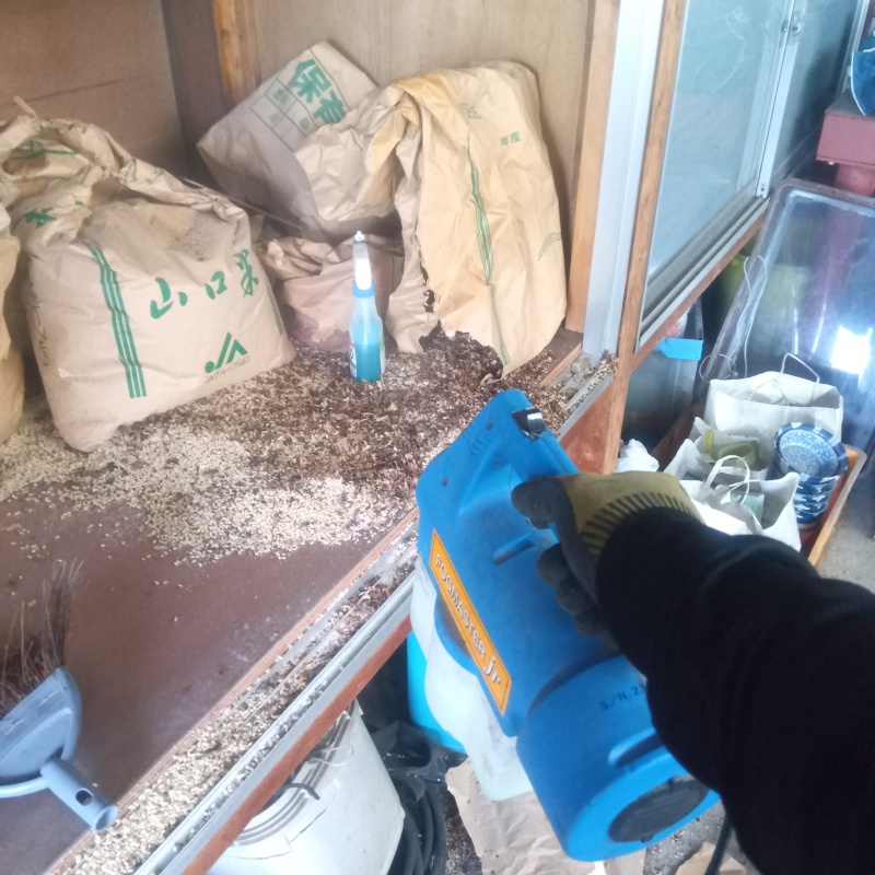 山口県周南市三笹町の戸建て住宅にお住まいのお客様より、ネズミ駆除のご依頼をいただきました。 倉庫内に保管していたお米の袋がかじられる被害が発生しているとのことでした。 現場を確認したところ、ネズミが活動した形跡であるフンが多数見受けられ、食害による被害も深刻な状態でした。 食料が豊富な場所はネズミにとって格好のすみかとなるため、これ以上の被害拡大を防ぐべく、迅速に駆除および衛生管理の施工を開始しました。